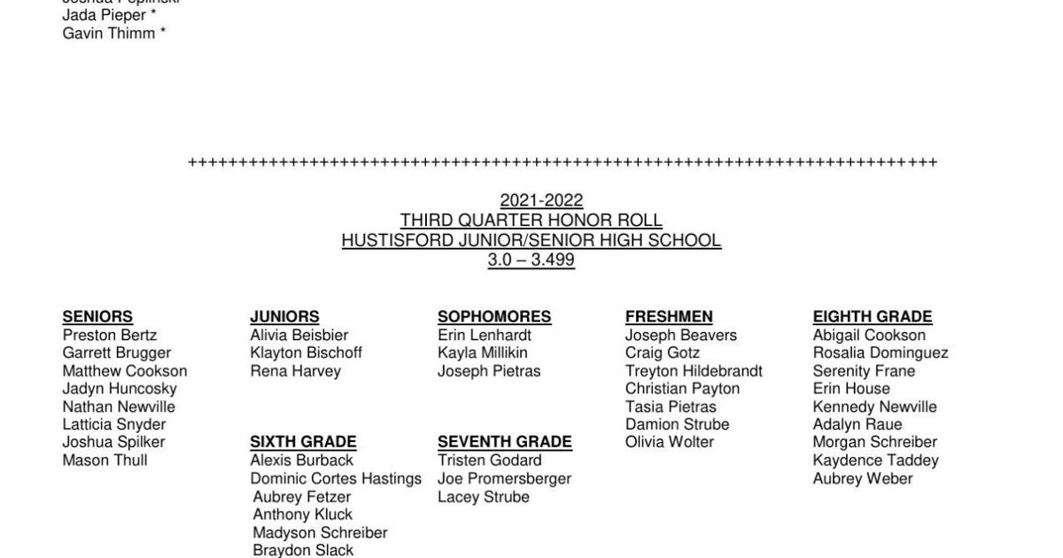 Hustisford High School Honor Rolls Honor Roll Wdtimes Com